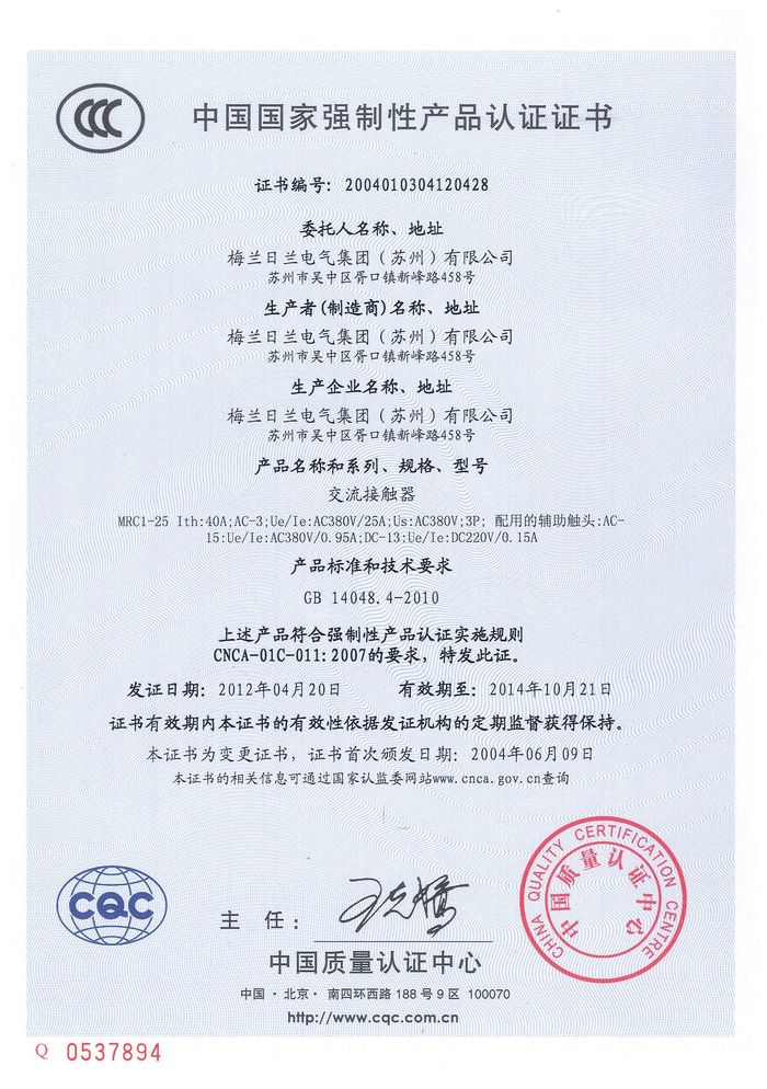 MRC1-25交流資質(zhì)證書(shū)