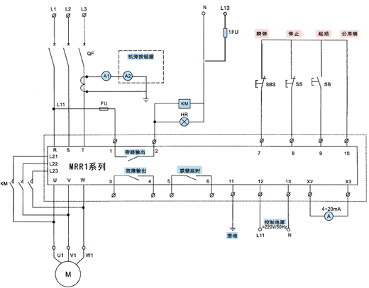 | 1、2 | 旁路繼電器端子 | 可用于起動完畢后切換至旁路接觸器 |