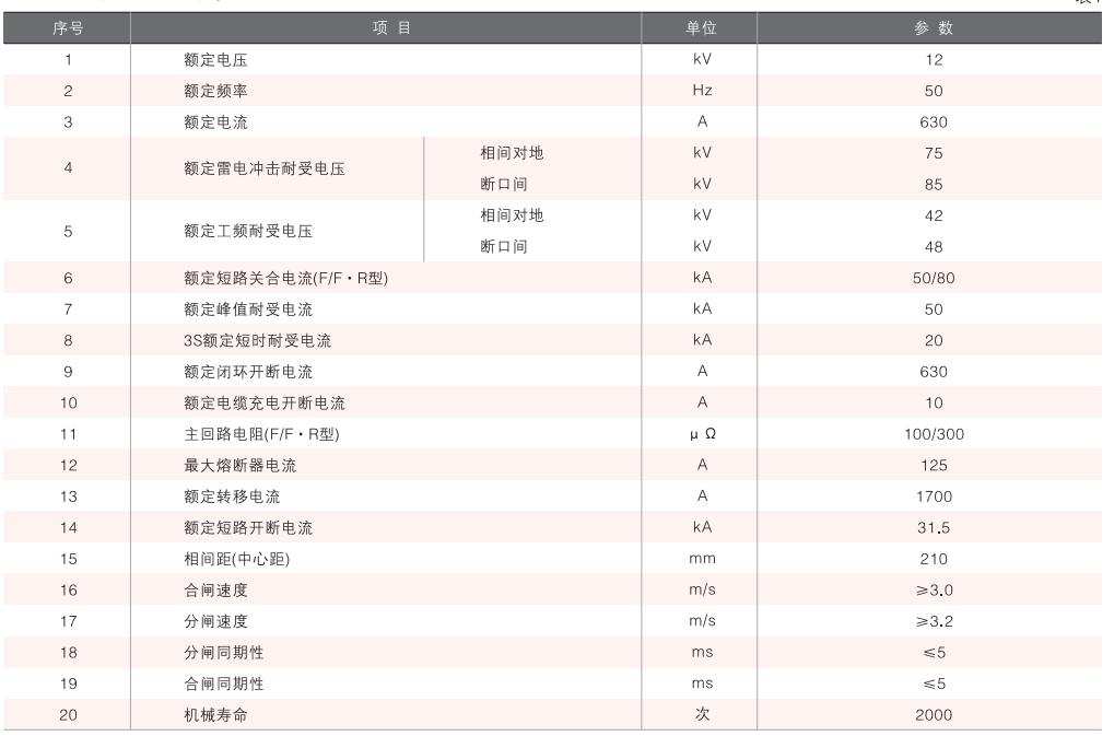 真空開關(guān)柜主要技術(shù)參數(shù)